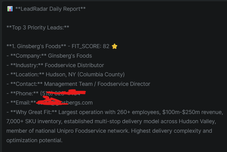 This AI lead generation agent automatically identified, scored, and qualified 10 high-potential prospects daily.