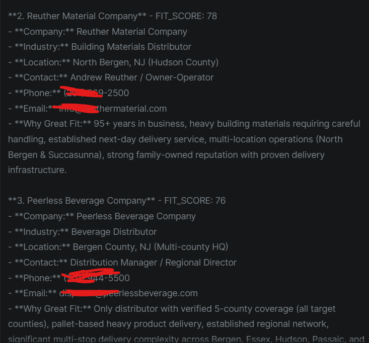 Marketing Objective: Build an AI-powered lead generation system that would autonomously identify, qualify, and deliver decision-maker-level contacts for local freight and micro-delivery prospects across the NJ/NY metro area, eliminating manual prospecting burden while improving lead quality beyond what human researchers could achieve cost-effectively.