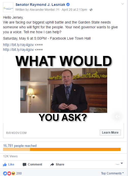 16,781 total reach, demonstrating significant voter exposure across New Jersey